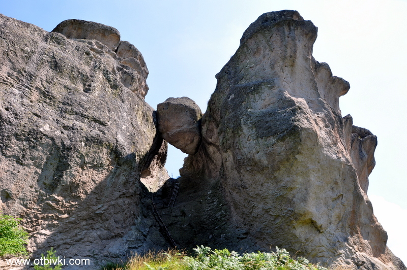 Уникално място с много енергия. Представлява скала, разделена на две, като по средата й е „заседнал“ огромен камък. Не е ясно как се е получило това, нито преди колко хиляди години е станало. На върха на скалата има ритуални ями, каквито има и на много други места в България, и които са били култови за траките.