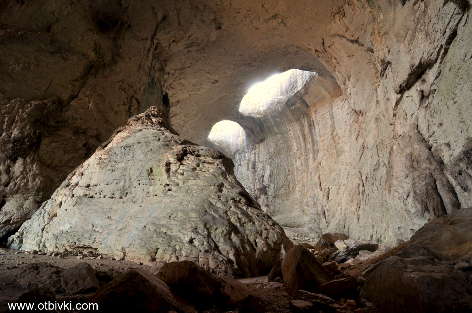 DSC_0011Когато заставам под „Божиите очи“, усещам топлината на слънчевата струя, която огрява лицето ми. В този момент не мисля за нищо. Не моля. Не питам. Единственото, което искам, е да се насладя на мига, в който се чувствам близо до Бог, а може би всъщност по-близо до себе си. Погледнати под определен ъгъл, отворите приличат на лице, свело поглед към посетителите на пещерата. Проходна е една от най- известните и посещавани пещери в България – не само заради уникалната й структура, но и заради факта, че е лесно достъпна.