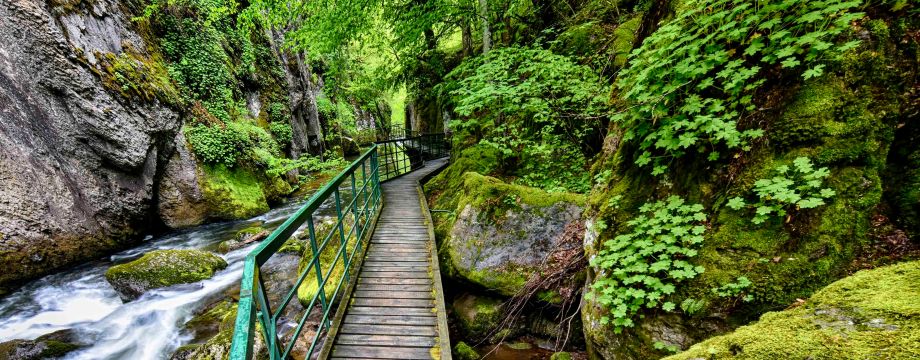 Маршрутът върви срещу течението на река Девинска, като включва преминаване по множество мостчета над водата. Те са закрепени за отвесни скали, обрасли със зелен мъх, папрат и здравец.