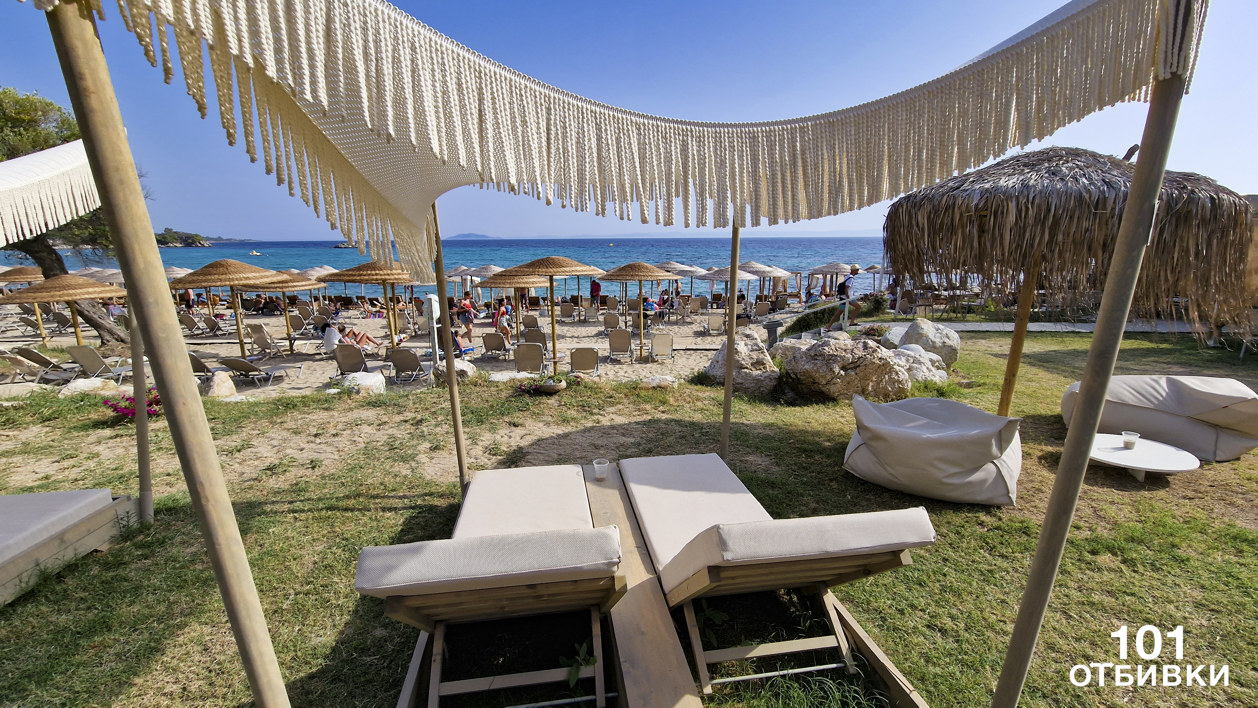 На около десетина минути с кола от Никити има страхотни плажове, които покриват нашите изисквания за „син флаг“ (тюркоазено синя вода, пясъчно дъно, без водорасли, медузи и други дразнители).
