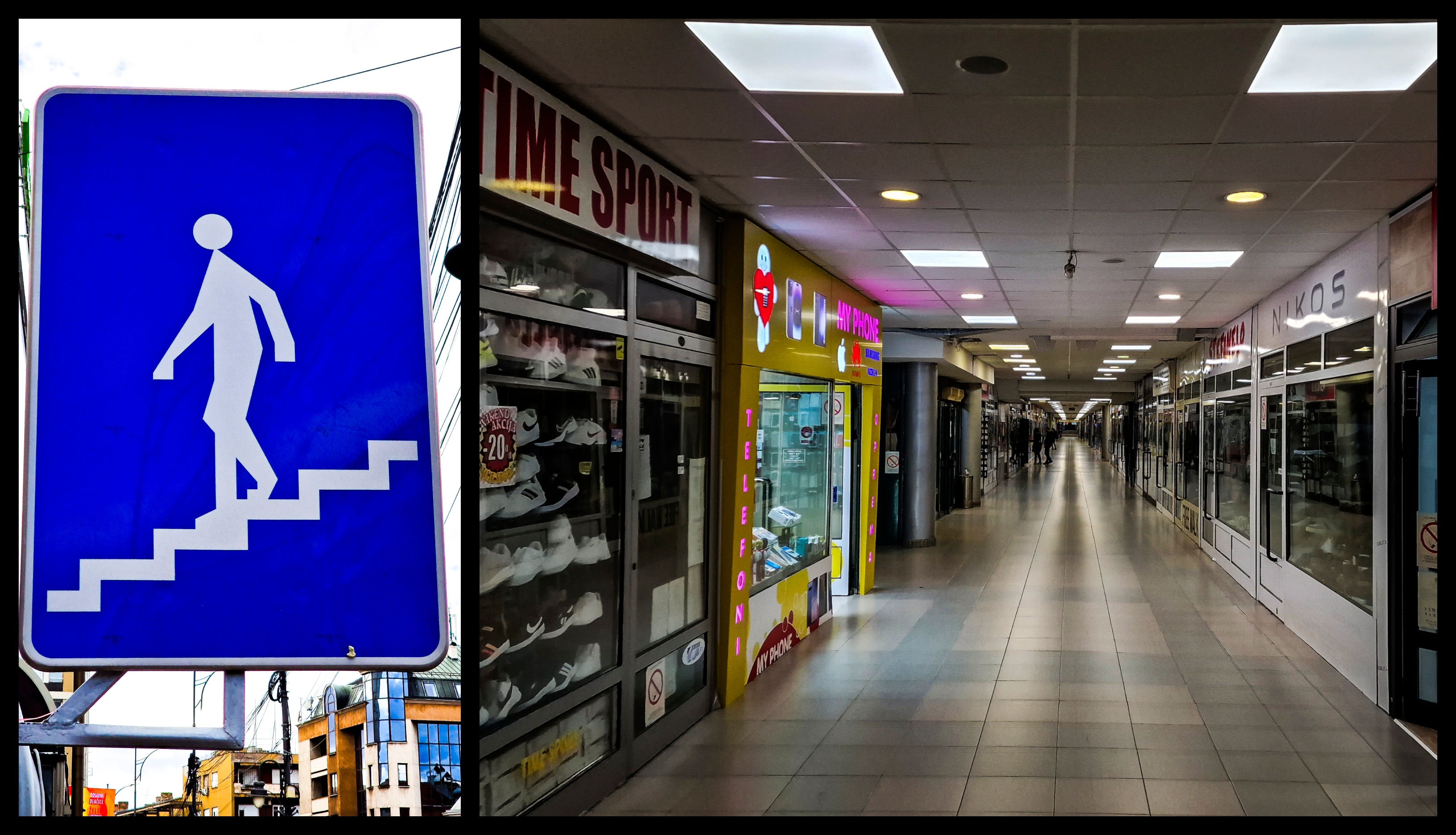 Освен споменатите вече бездомни кучета, просяци и разхвърляни боклуци, се набиват на очи и странни спираловидни стълбища, които водят нанякъде. В първия момент си мислите, че това са входове към метро, но после осъзнавате, че такова в Ниш не съществува. Оказа се, че са входове към “подземния мол” – дълъг пешеходен пасаж с магазинчета от двете страни, който е дълъг повече от километър и върви успоредно на Главната – наследство от Титова Югославия. Както знаем, Тито е бил почитател на подземните тунели и противоатомните скривалища. В “подземния мол” има стотици малки дюкянчета, в които се продават всякакви стоки със съмнително качество – почти като в “Илиянци”.